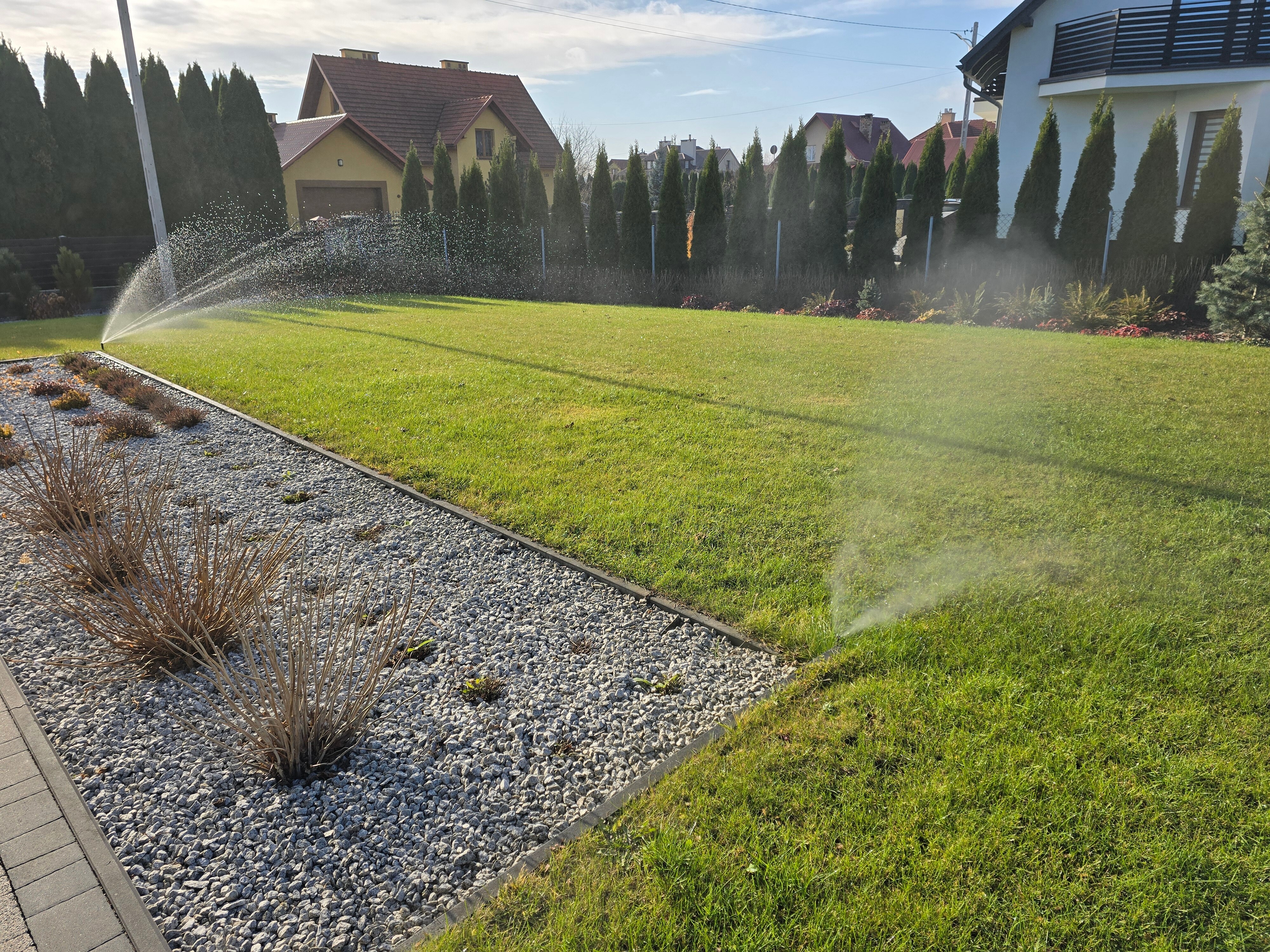 Projekt i montaż automatycznego nawadniania ogrodu prywatnego. Zdrowa zieleń i oszczędność wody.